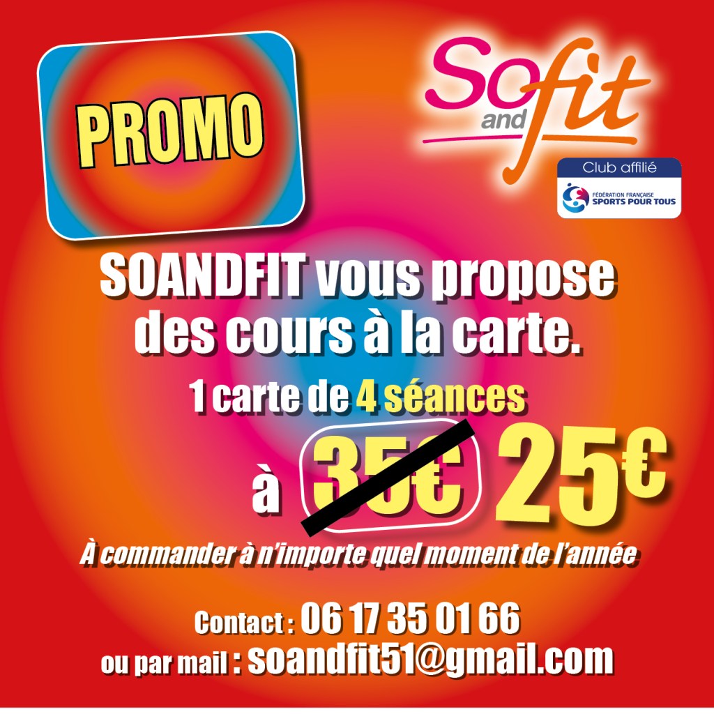 Soandfit est une association loi 1901 proposant des activités de fitness : pilates, cardio HIIT, danse, stretching et renforcement musculaire pour Tinqueux ainsi que Reims et alentours.