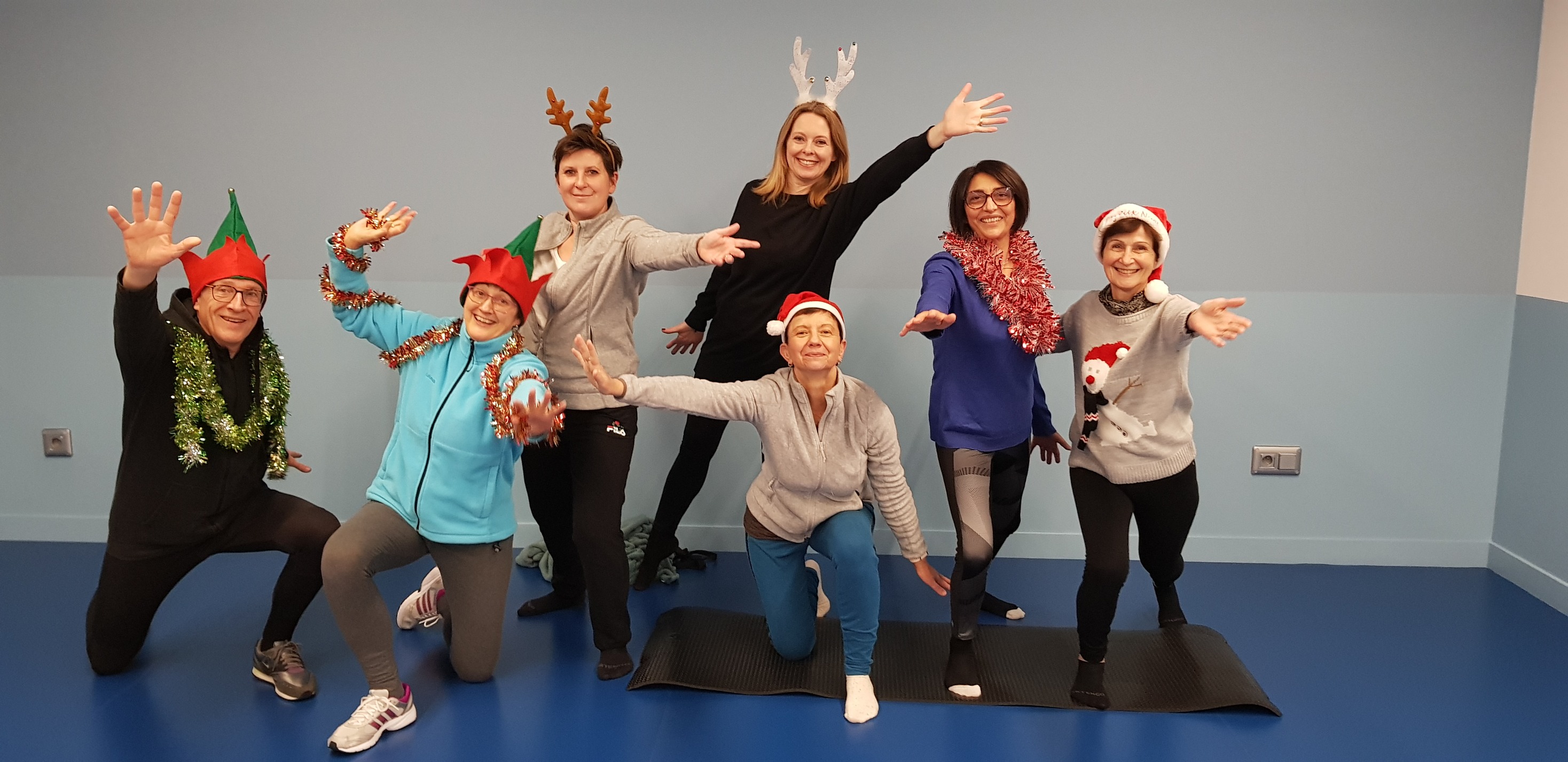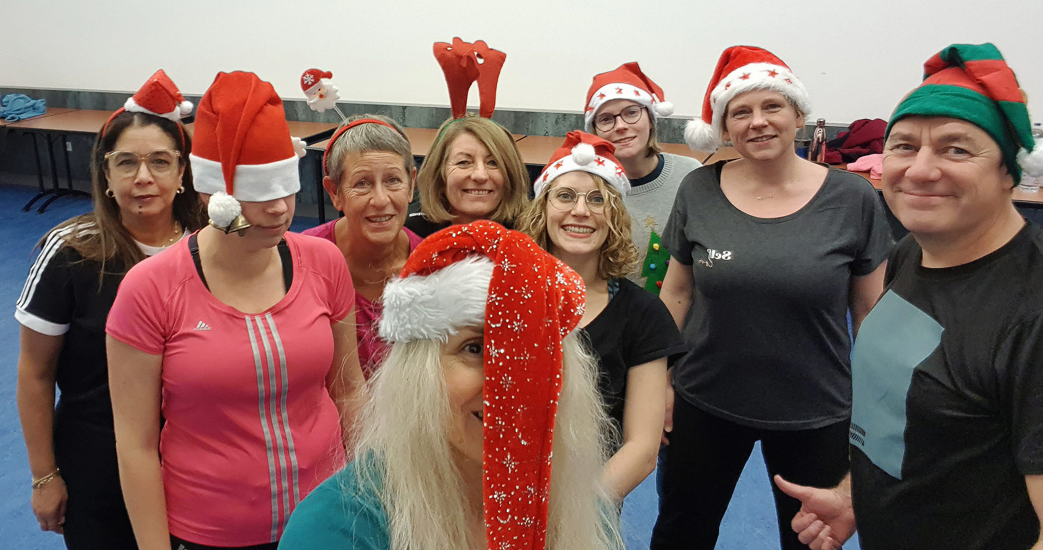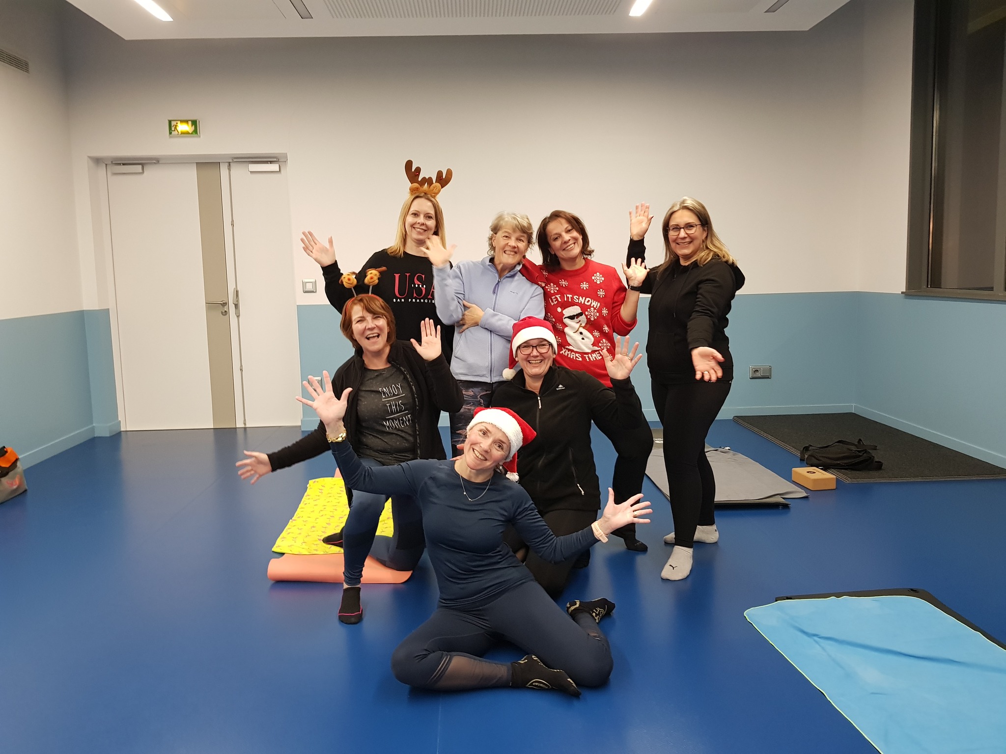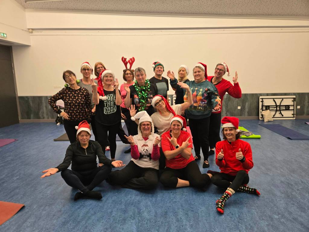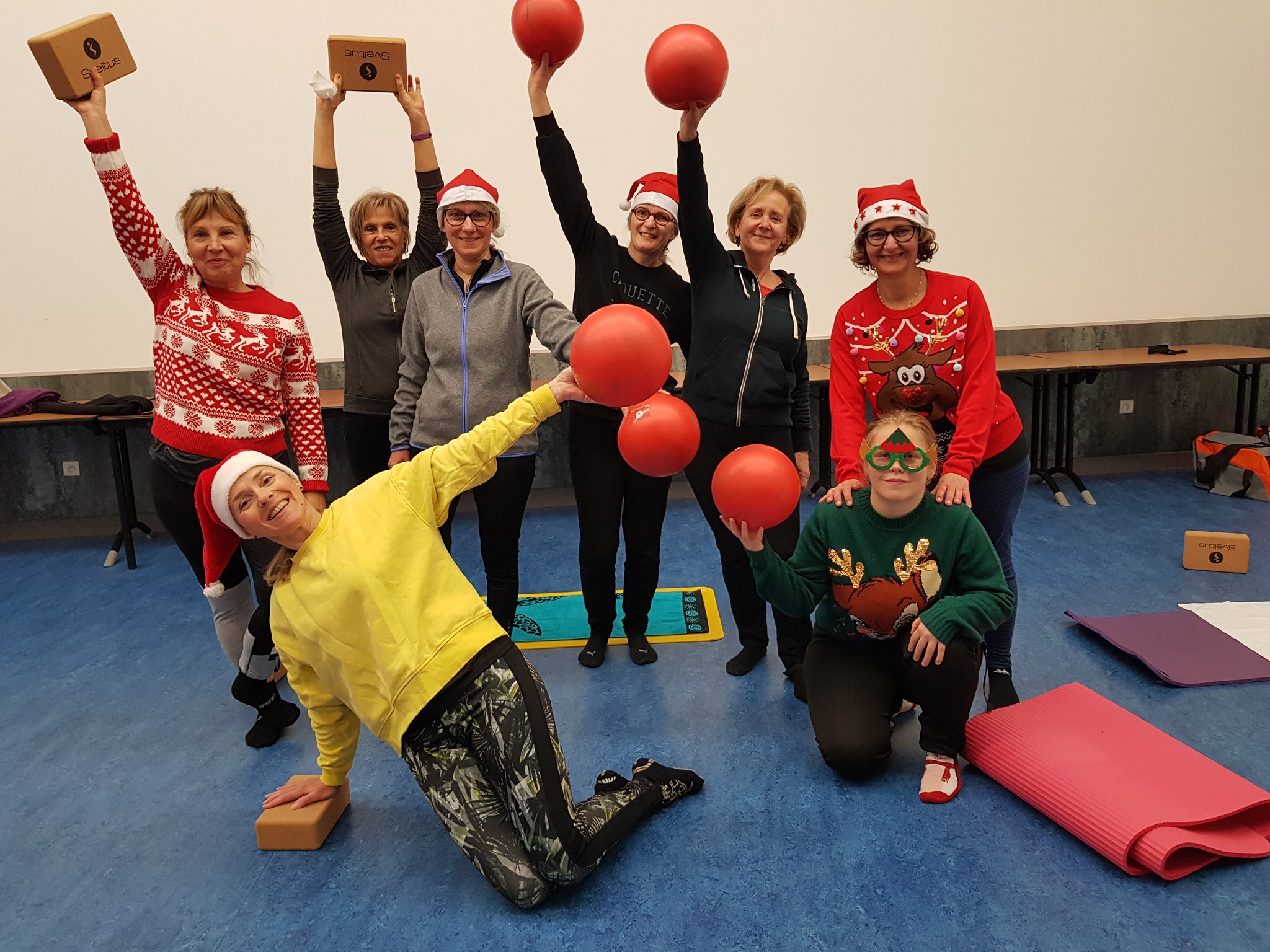 La souplesse et l’équilibre, c’est notre spécialité et on vous le montre sur la photo de Noël avec le groupe du Stretching du lundi ! Au top !