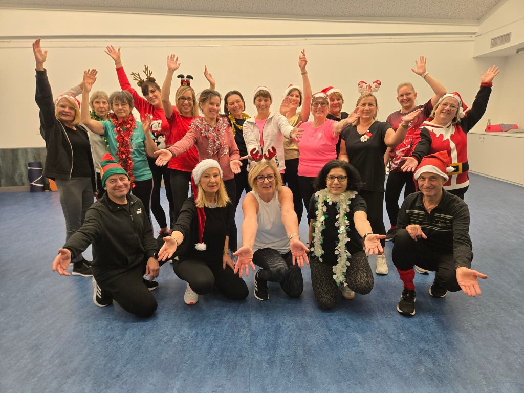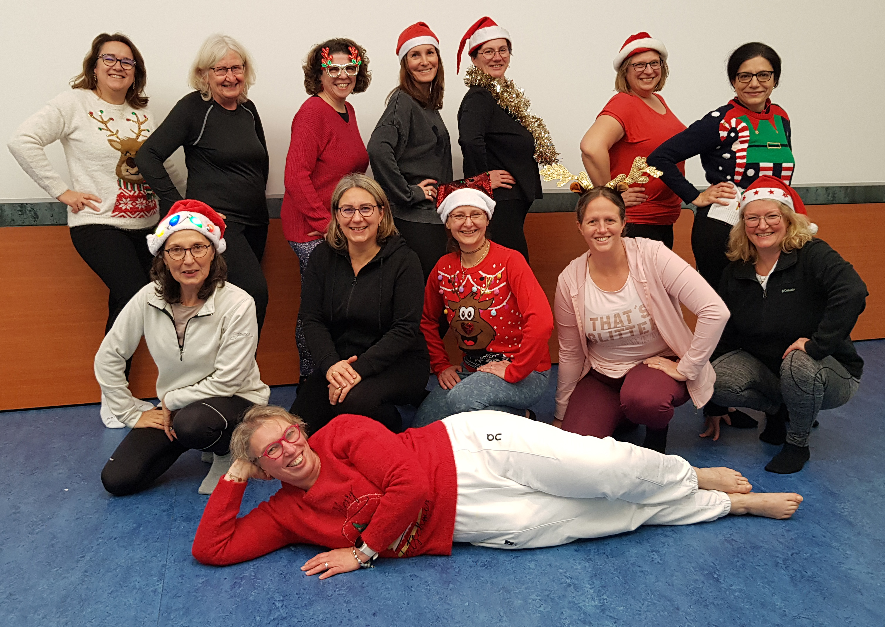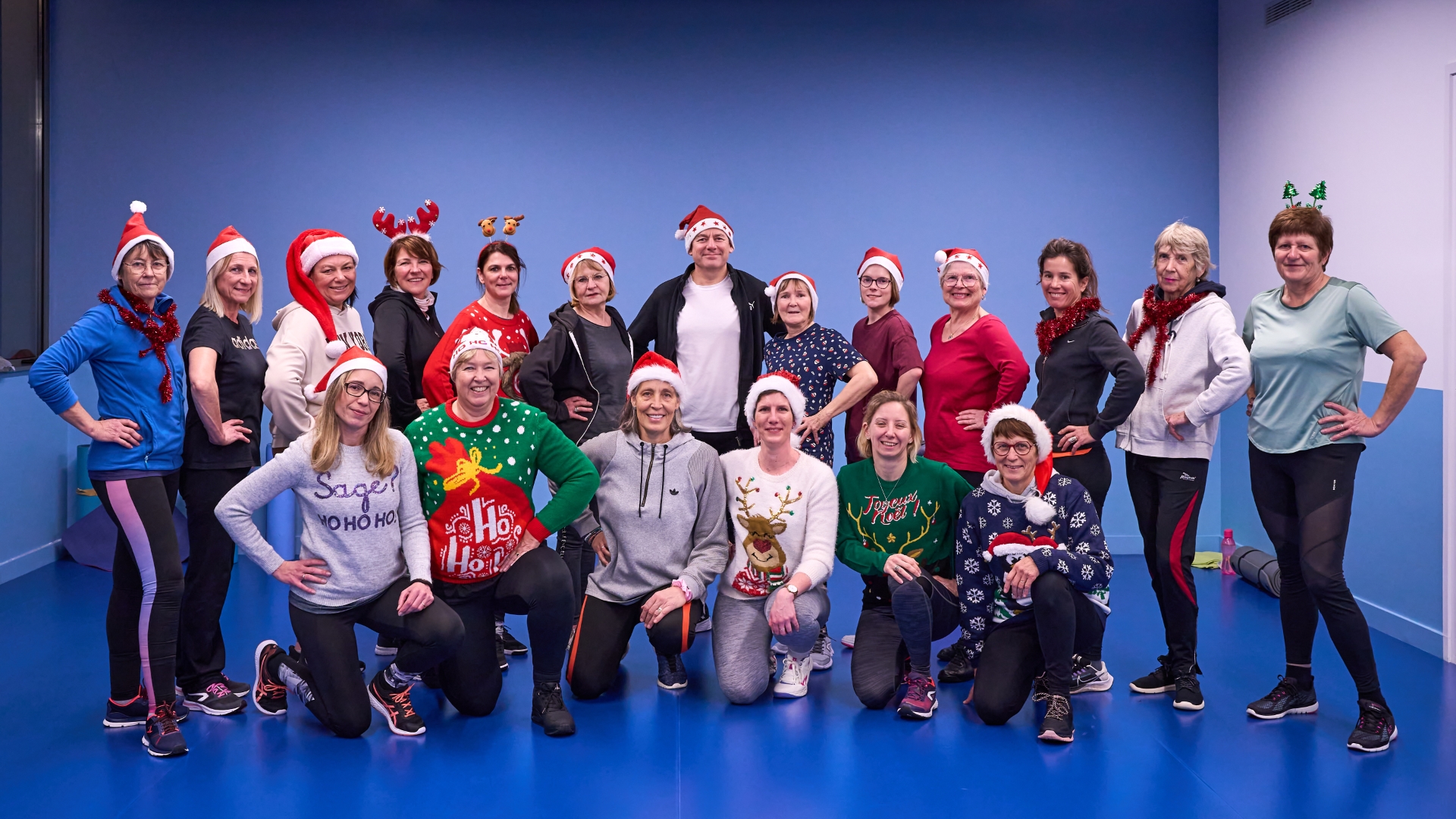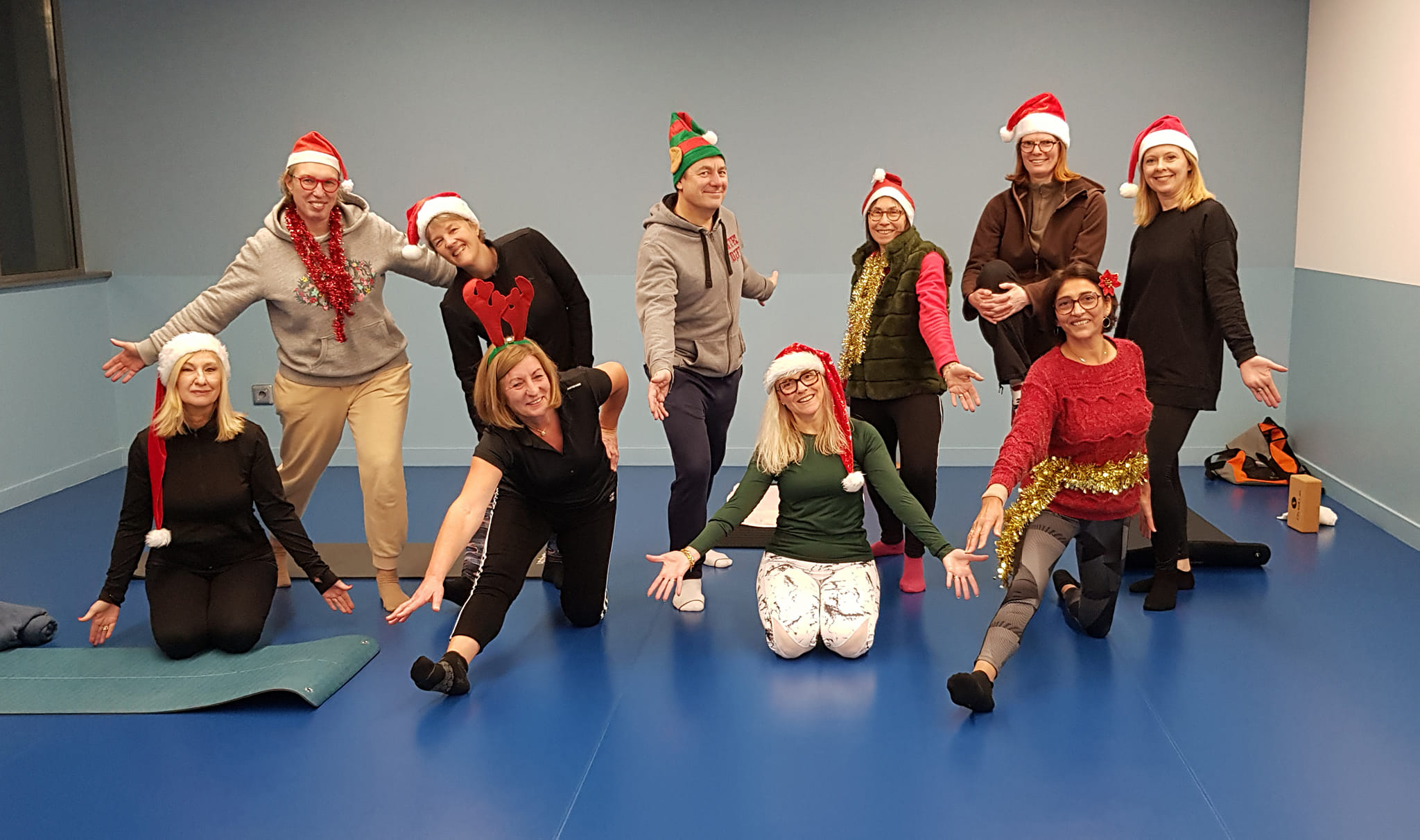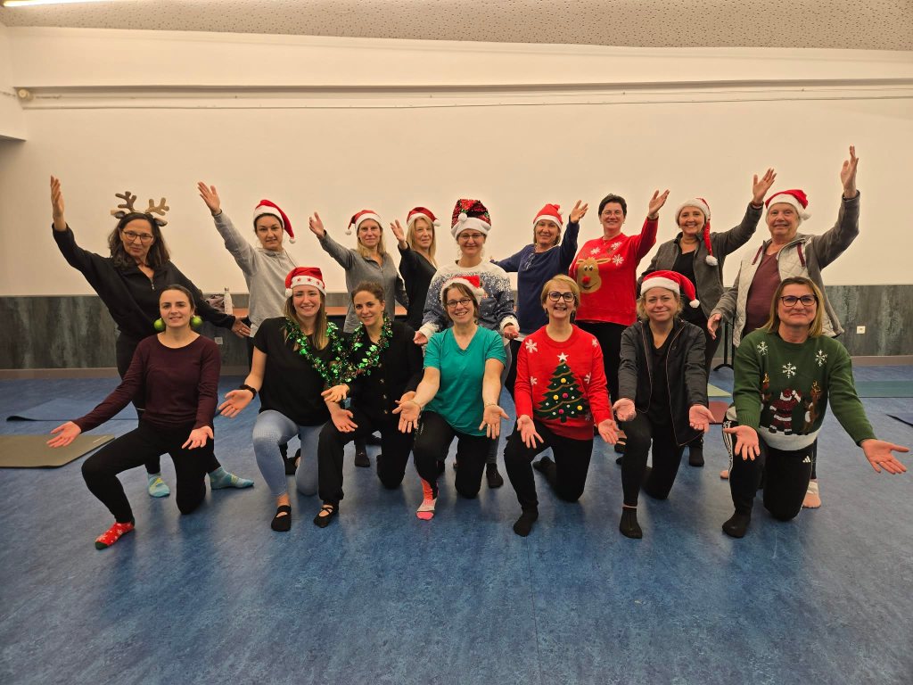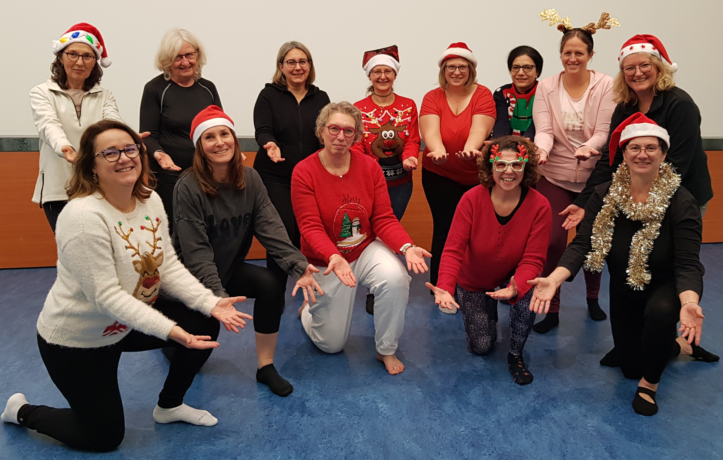 La souplesse et l’équilibre, c’est notre spécialité et on vous le montre sur la photo de Noël avec le groupe du Stretching du lundi ! Au top !