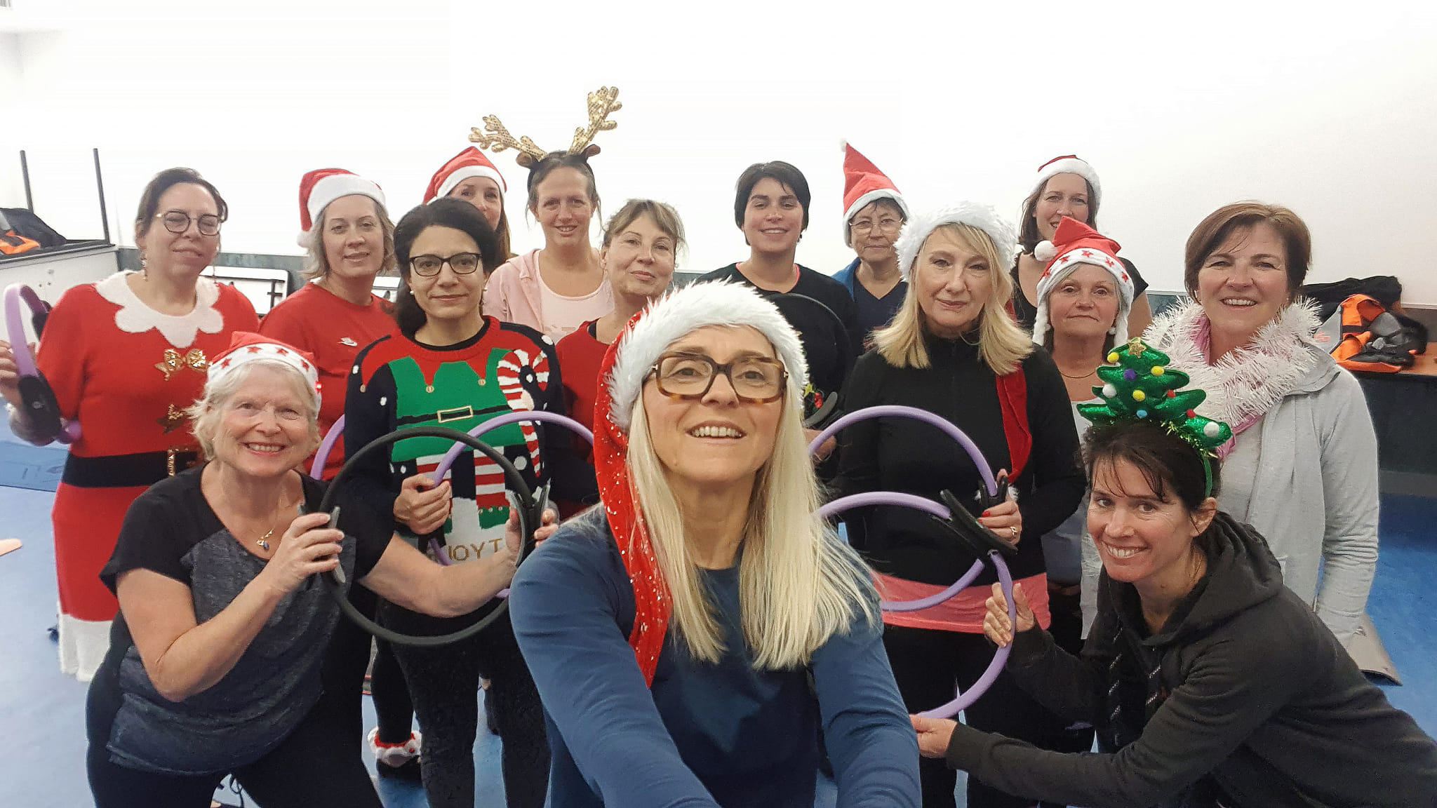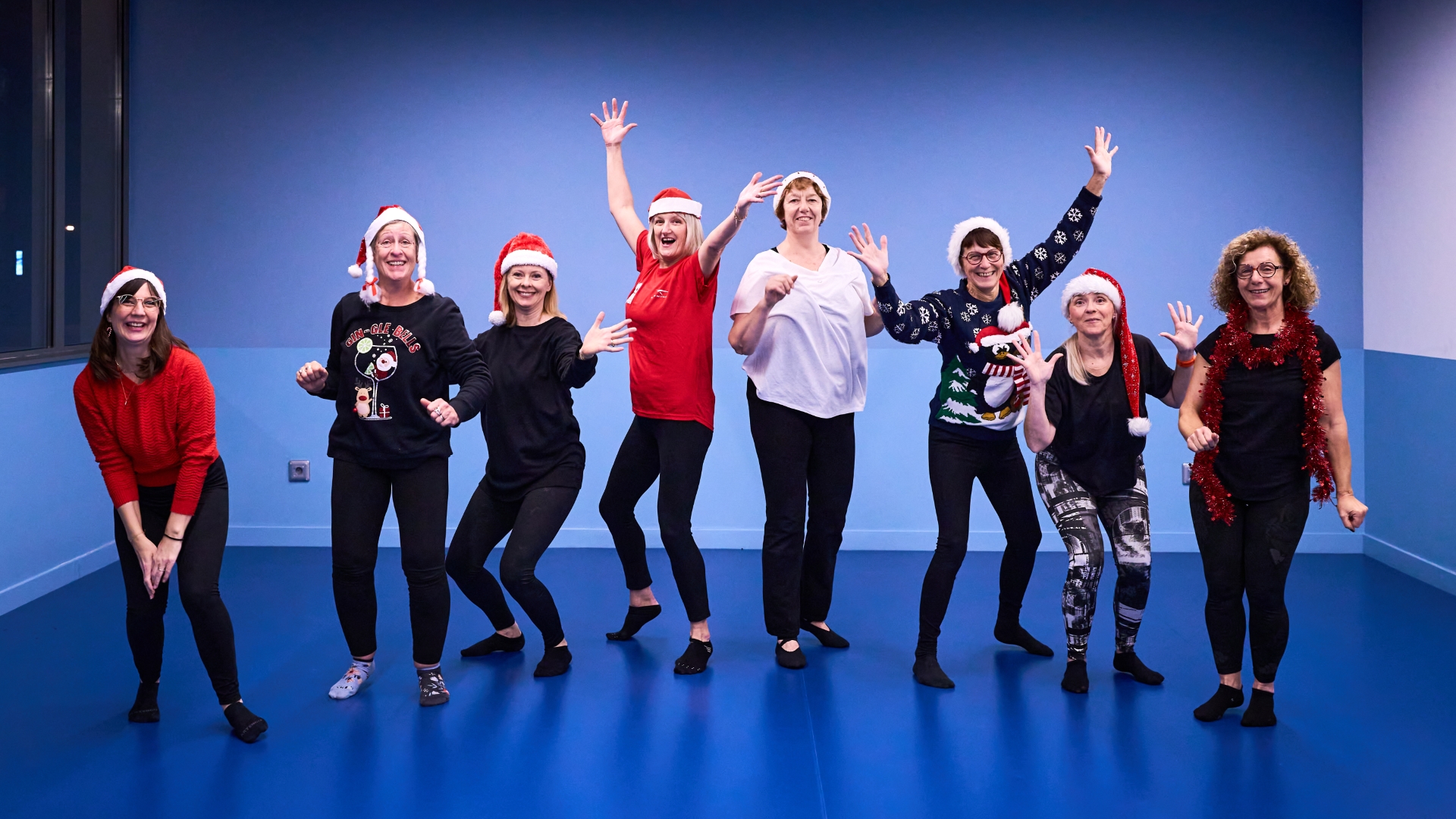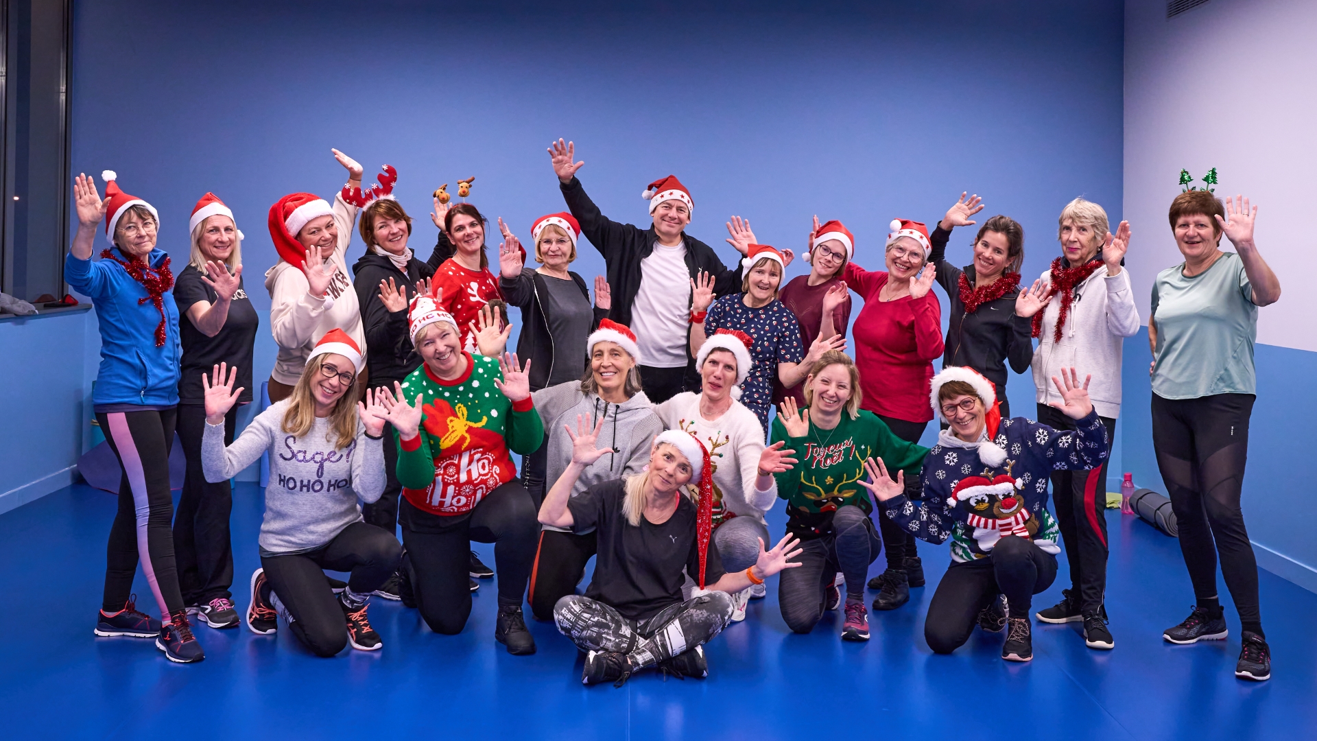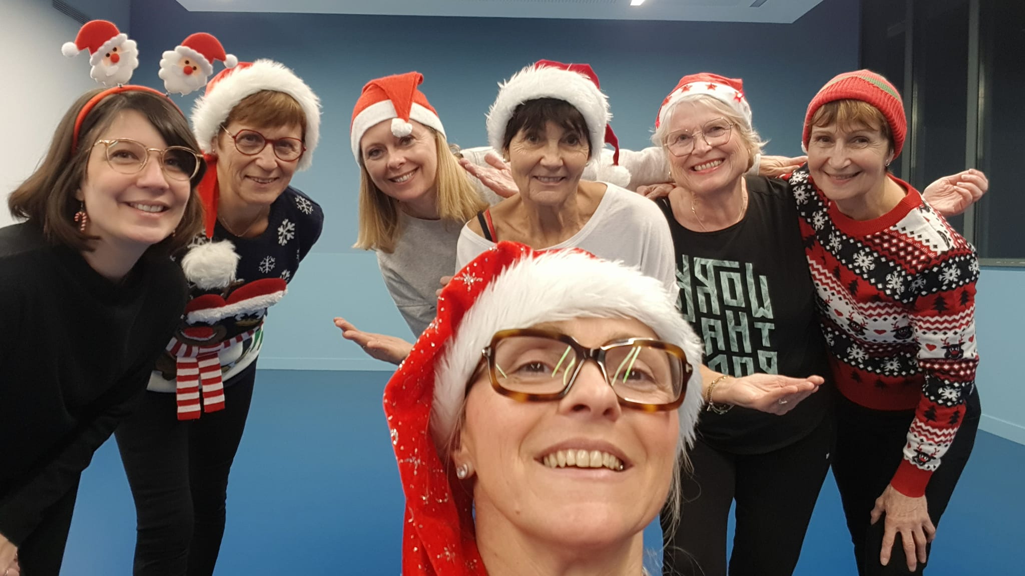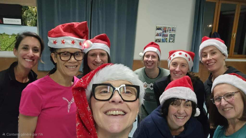 La souplesse et l’équilibre, c’est notre spécialité et on vous le montre sur la photo de Noël avec le groupe du Stretching du lundi ! Au top !