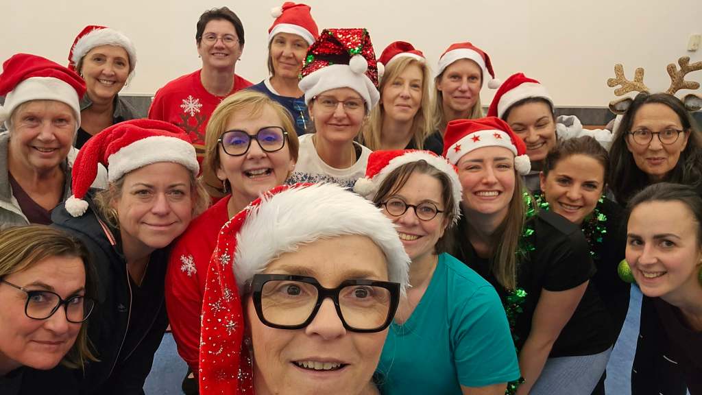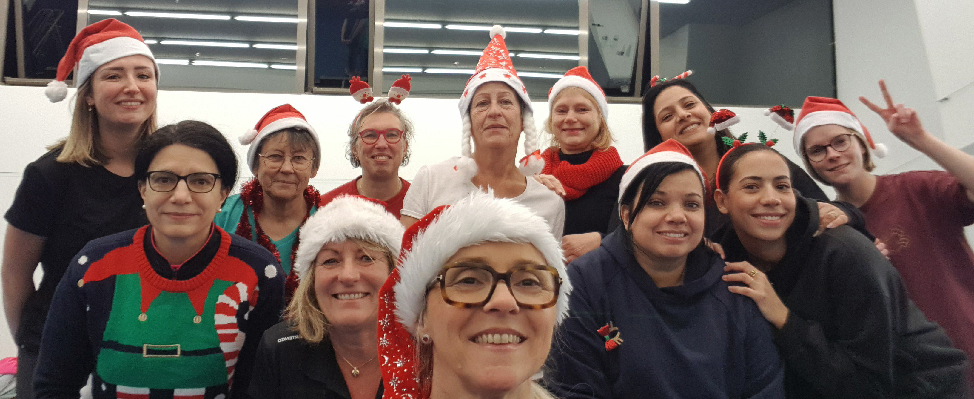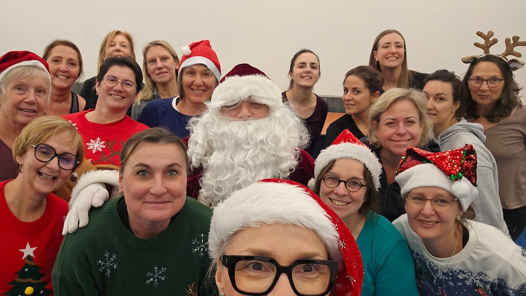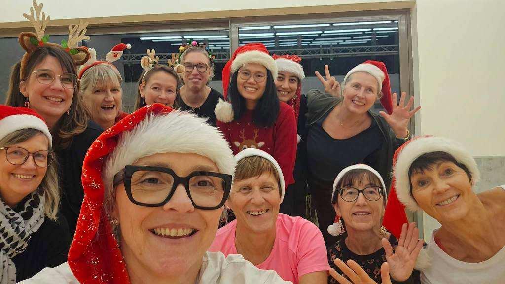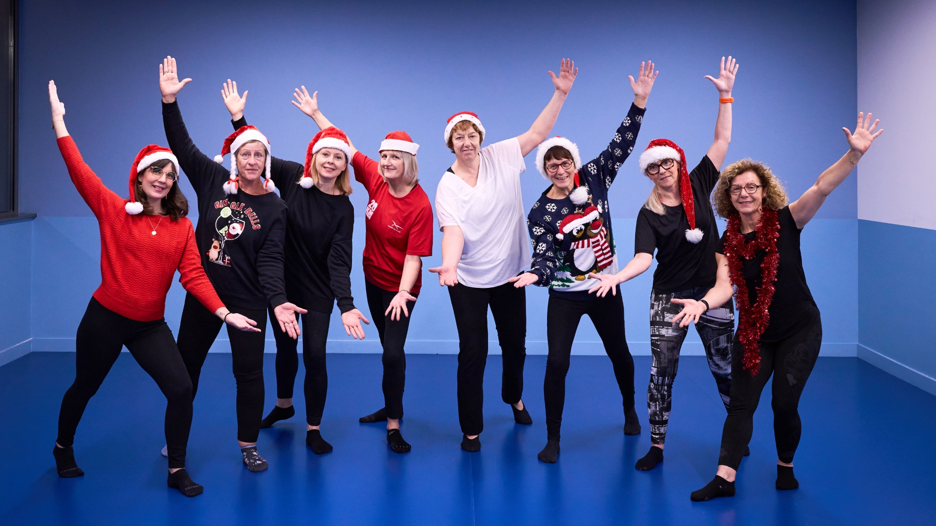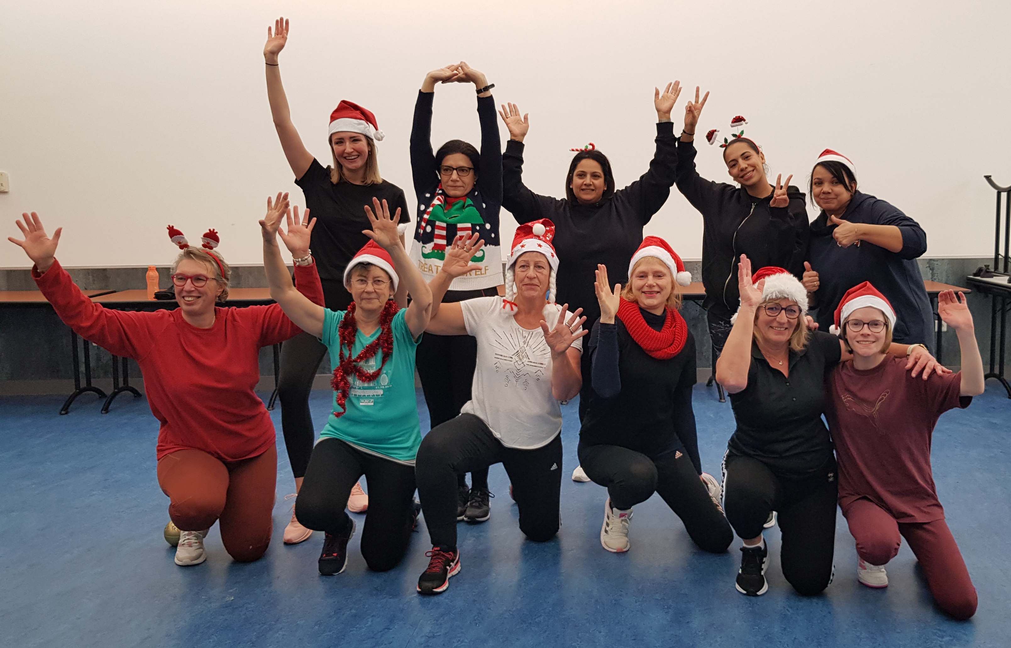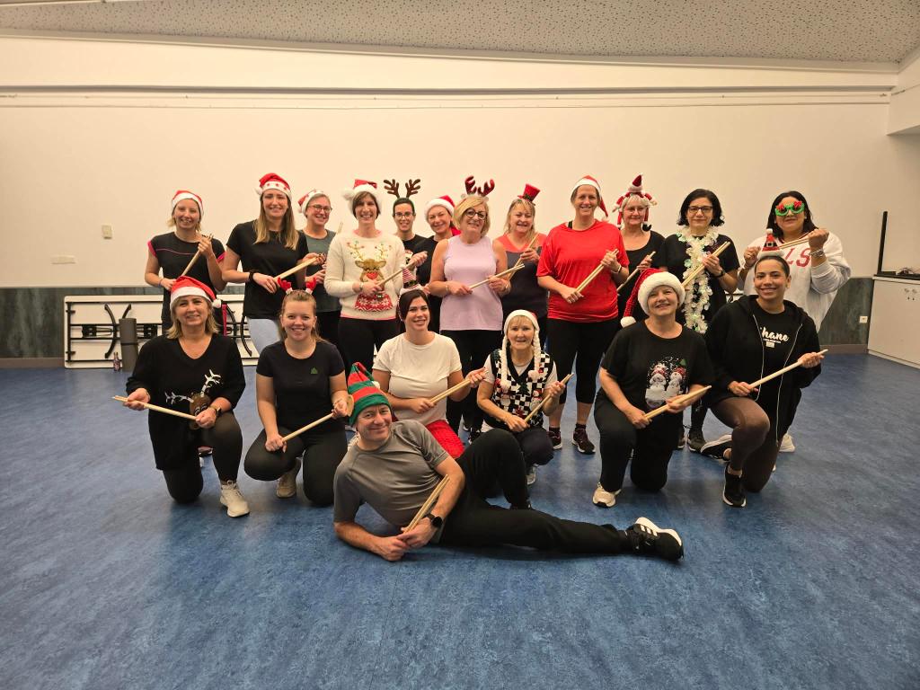 La souplesse et l’équilibre, c’est notre spécialité et on vous le montre sur la photo de Noël avec le groupe du Stretching du lundi ! Au top !
